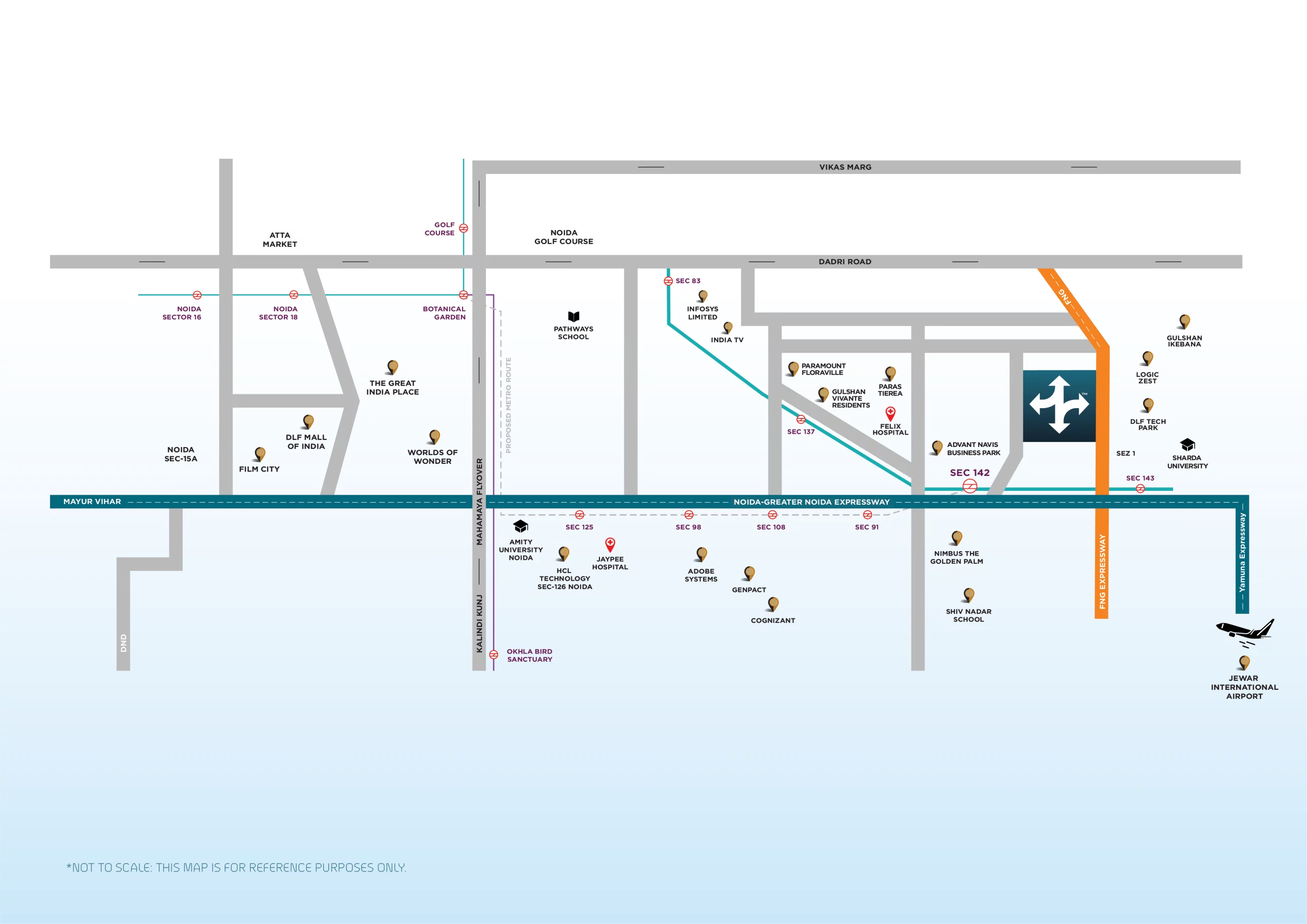 • Strategically located and adjacent to FNG, Noida – Greater Noida Expressway and Corporate Hubs.